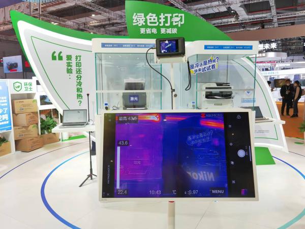 Taking printers closer to citizens’ lives as an example, Liu Yi, a staff member of Epson, showed reporters a set of comparisons-The traditional laser printer is placed side by side with the cold-printing ink bin printer, and the thermal imaging camera is used to monitor the heat emitted by the machine in real time. The results show that the temperature of laser printer equipment changes obviously, and the printing paper temperature rises to 40℃, while the ink bin printer is still at room temperature."In the printing process, the Epson ink-bin cold printing printer only needs the simple step of inkjet, while the laser printer involves multiple heating links in operation, which will inevitably generate more energy consumption."